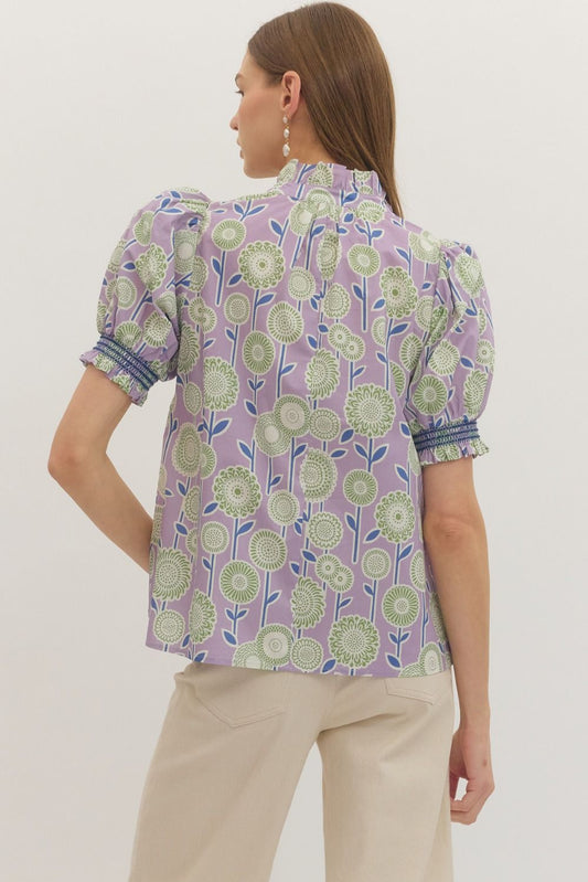 Floral print puff front closure