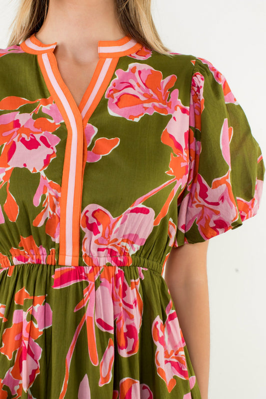 Puff Sleeve floral print dress