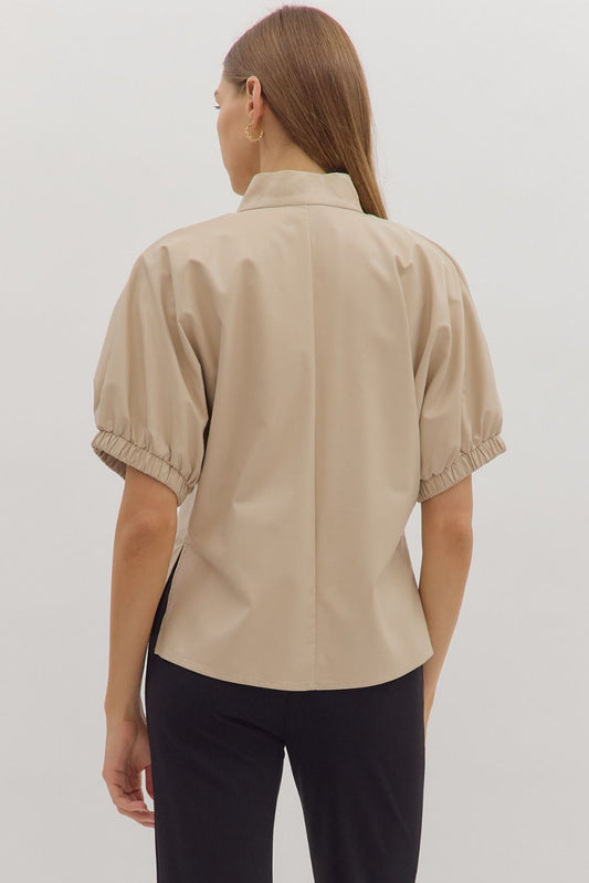 Faux Leather Cream Top