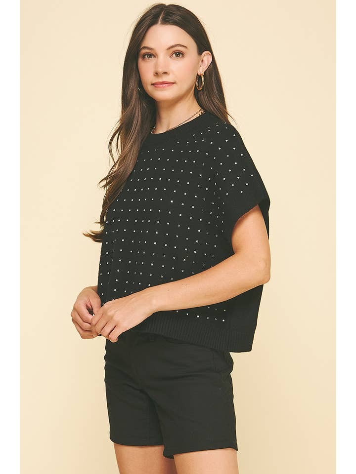 Stone embroidered detail Round neck Cap sleeve Comfort fit Model wears a size small